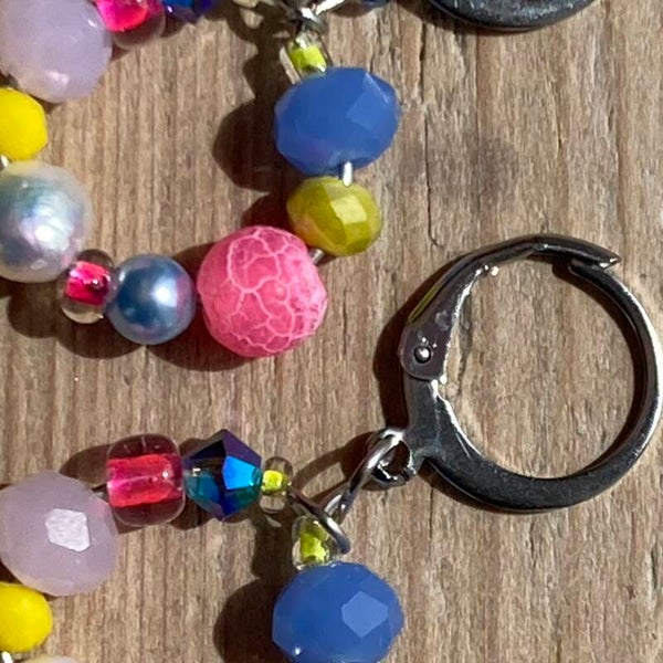 Zoektermen: kleur, kleurrijk, hoops, parel, oorbel, oorbellen, klein, rond, mooi, fun.