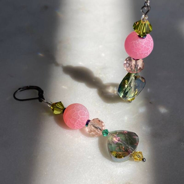 Materialen: Swarovski, hematiet, gekleurde agaat, glas.