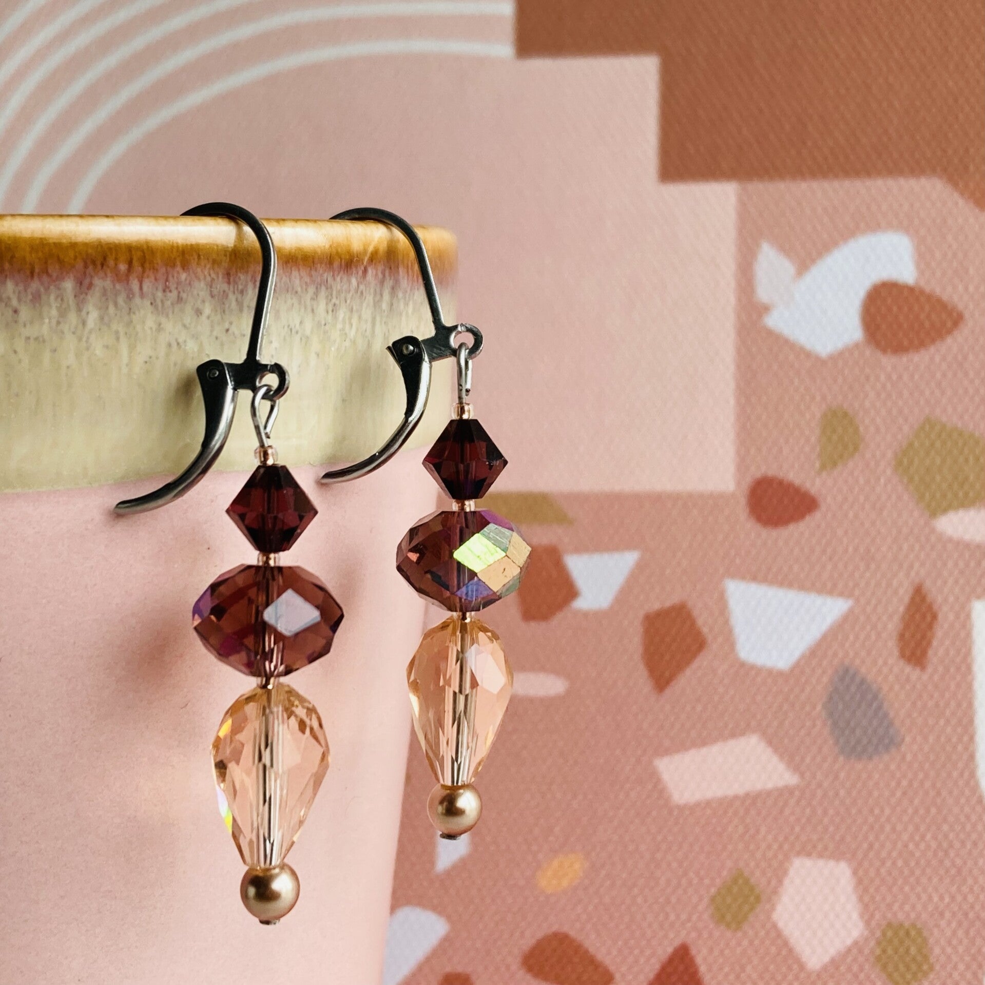 Materialen: Swarovski, Swarovski parel, gefacetteerd glas en mini miyuki’s.