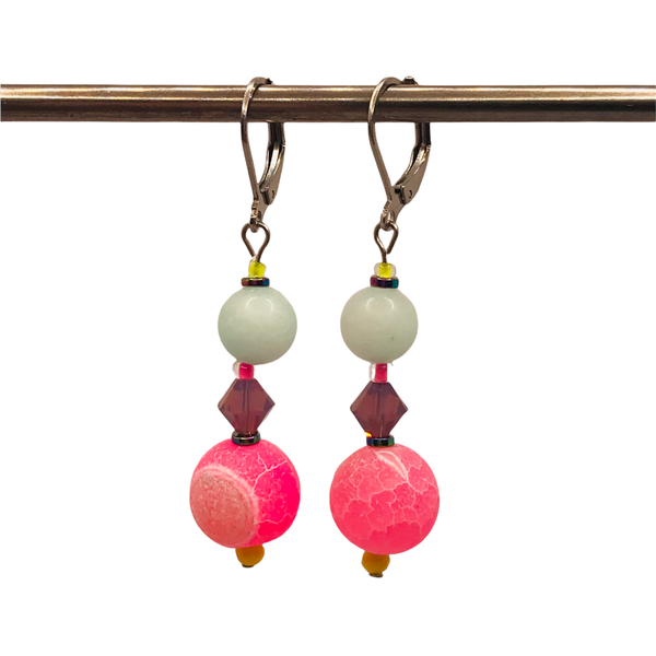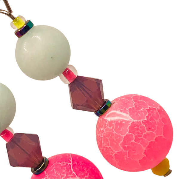 Materialen: hematiet, gekleurde agaat, Swarovski, glas.