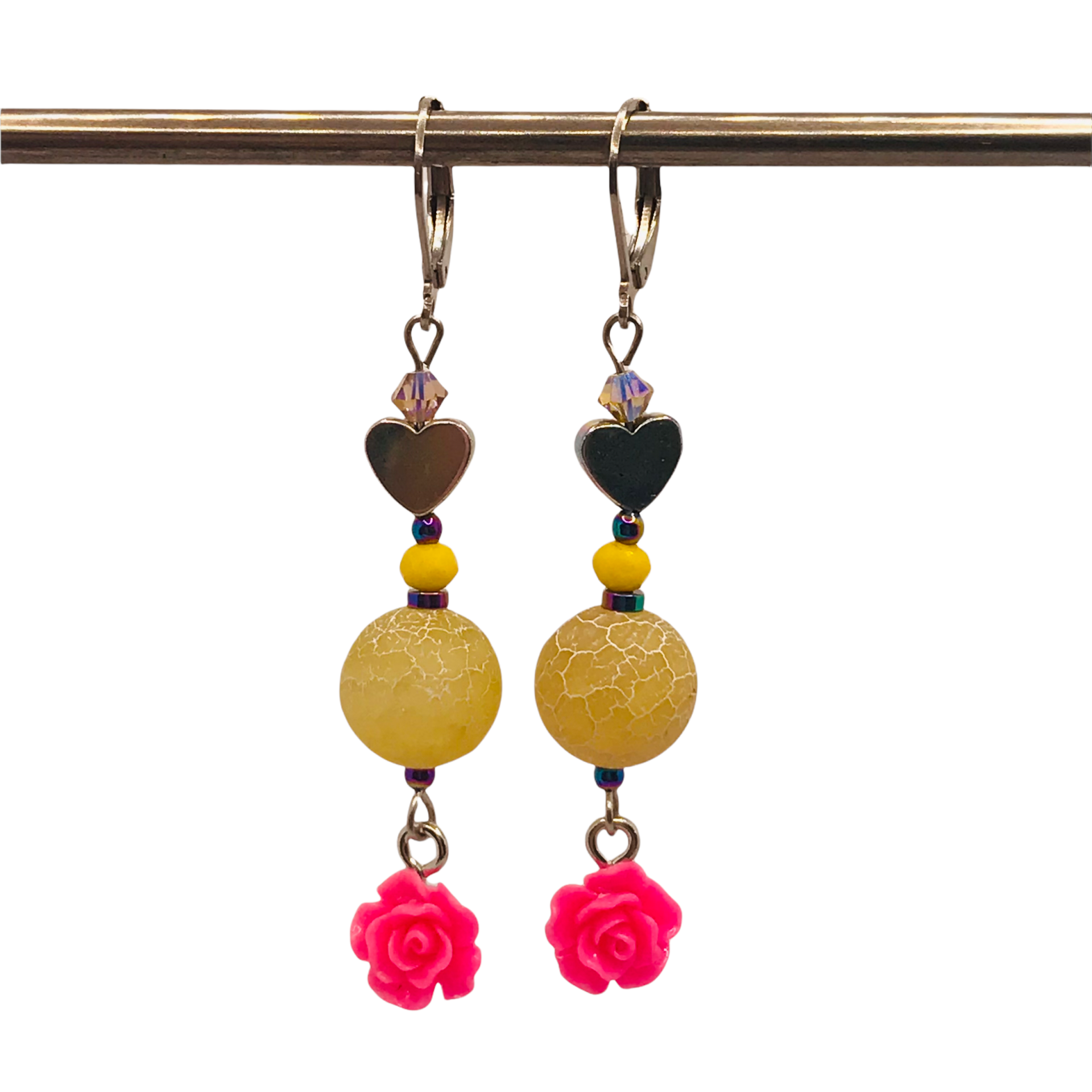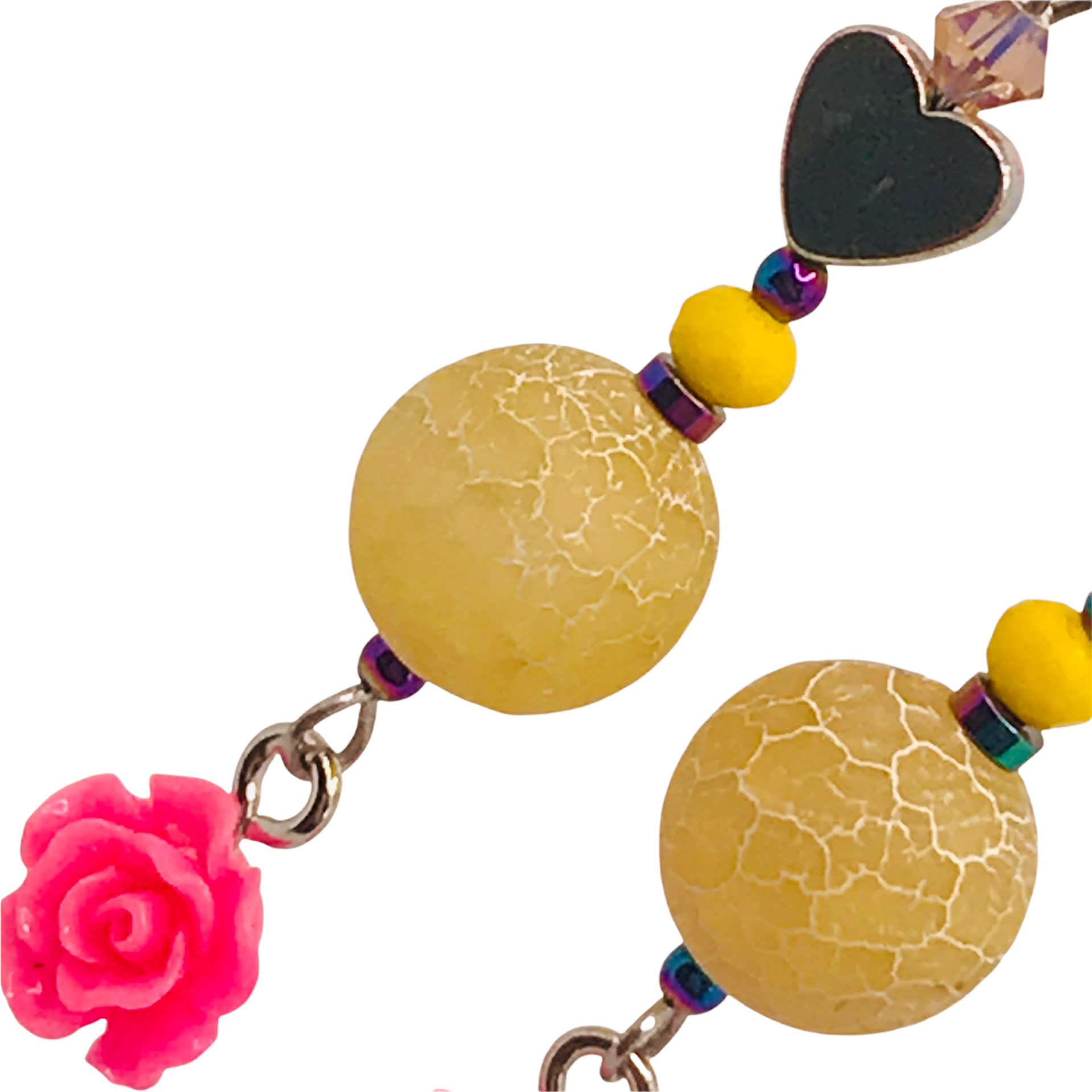 Materialen: hematiet, Swarovski, gekleurde agaat, glas resin.