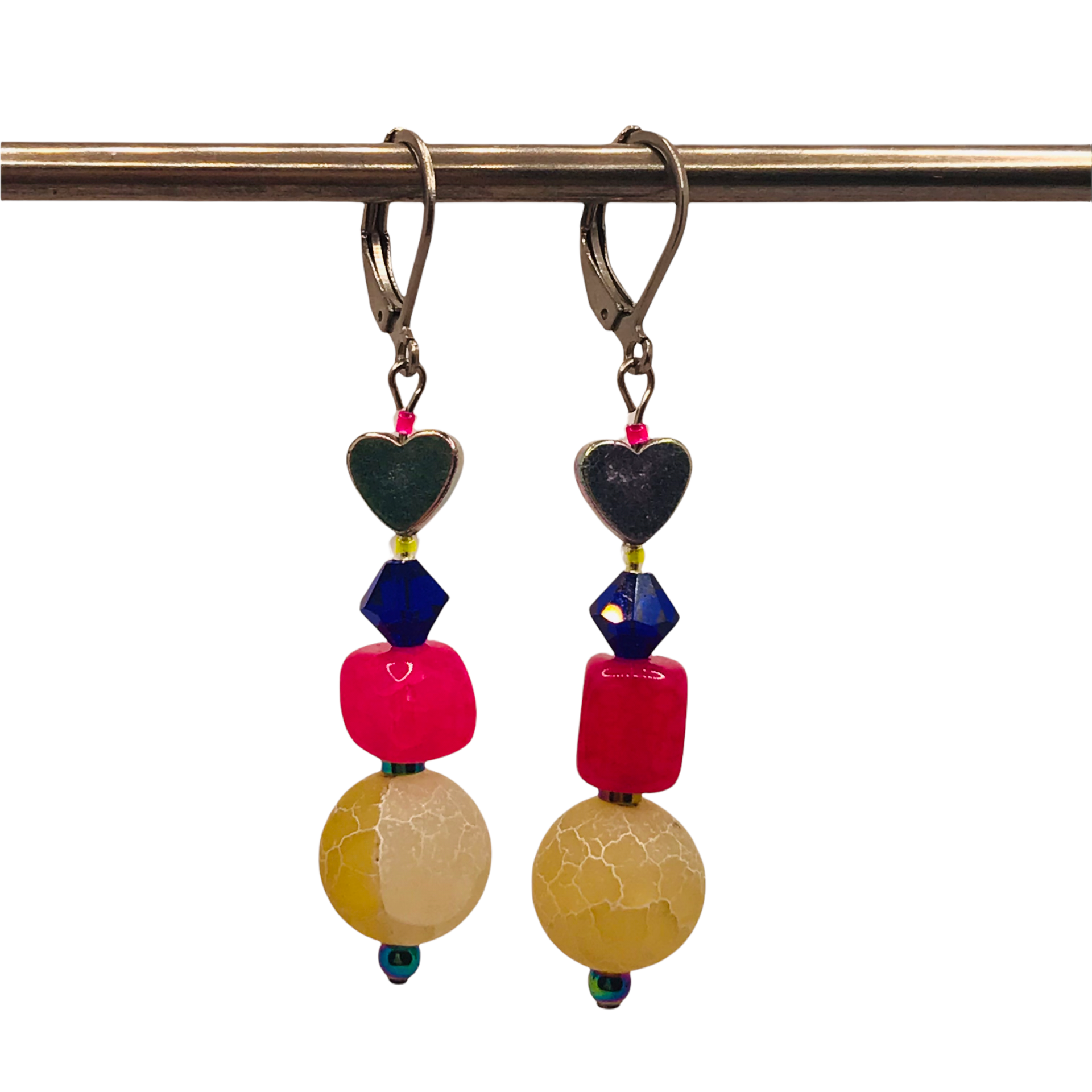 Materialen: Swarovski, gekleurde agaat, hematiet.
