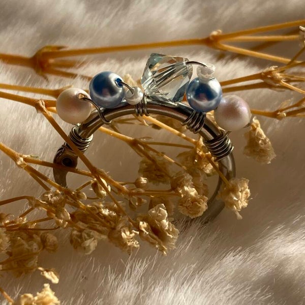 Materialen: Swarovski, Swarovski parel, glaskraaltjes.